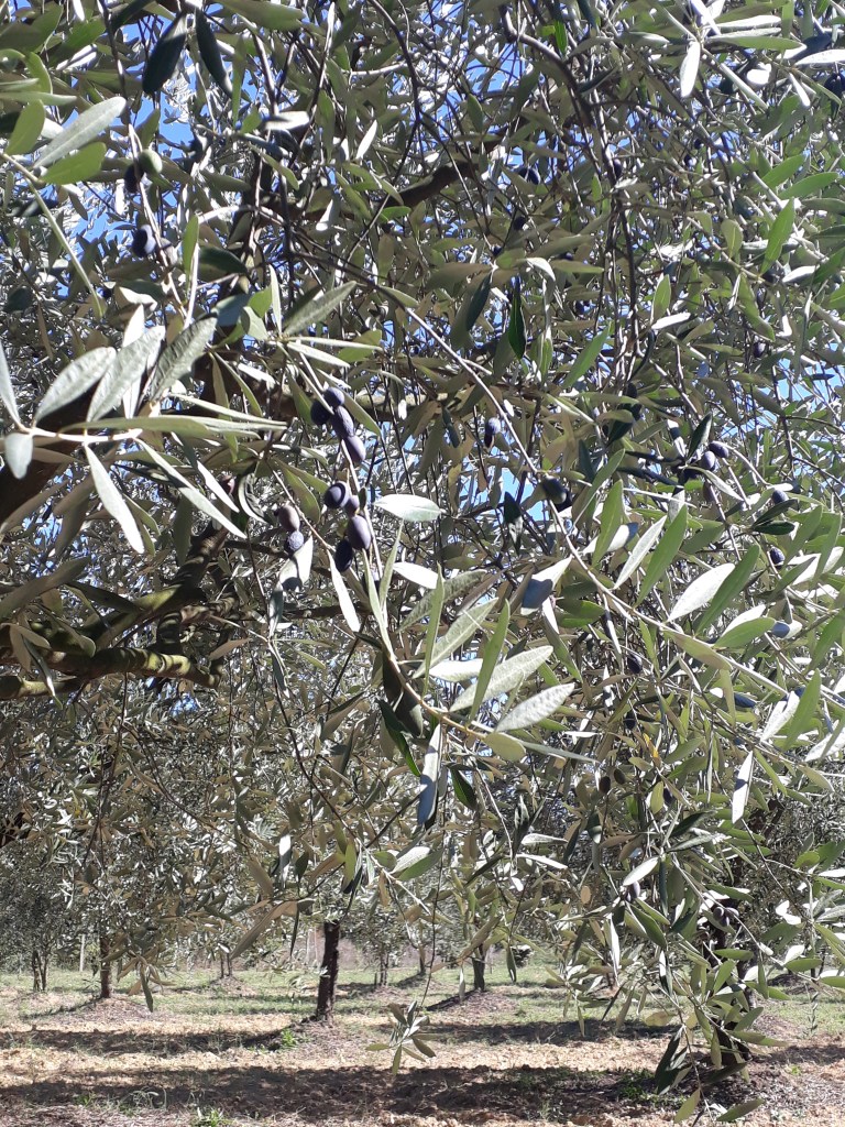 C’est donc seule dans l’ostello que je me réveille. Je suis d’excellente humeur malgré le fait que je n’ai pas réussi à me lever pour admirer l’aube. Tant pis, ce sera pour demain (ou un autre jour). Je commence à marcher dans la forêt: tout est calme et volupté. Oui, mais… c’est jour de chasse au sanglier et je suis encerclée par des coups de feu qui viennent de nulle part et semblent très (trop) proches. Pour que les prédateurs comprennent bien qui je suis, je fais le plus de bruit possible en traînant mes pieds sur les cailloux, en tapant fort avec mes bâtons et en toussant. Le ridicule de la maoeuvre ne manque pas de m’amuser. Je ne croise personne de presque tout mon parcours, je l’accepte. Après une phase très « sociale », je sens que le chemin vibre ces jours-ci d’une tonalité plus introspective et contemplative. Et il y a de quoi contempler! Je suis bel et bien en Toscane: collines, cyprès, oliviers, vignes, rien ne manque et je me régale. À l’entrée de San Miniato (partie basse de la ville), je tombe sur deux petites tables et deux chaises aménagées dans une rue: il piccolo ristoro della Via Parini. Des inconnus mettent à disposition des marcheurs des fruits, du café et d’autres douceurs, sans surveillance et en toute confiance. Je suis touchée par ce geste d’accueil gratuit. J’y fais une pause avant mon ascension vers San Miniato, qui se laisse peu à peu découvrir dans toute sa beauté. Mamadou, migrant sénégalais, m’accueille à l’Ostello et me parle un peu de son parcours et de la difficulté de s’intégrer en Italie. Ce pays est un paradis, mais pas pour tout le monde… Je rencontre aussi Elisabetta et Maria, les premières personnes que je croise qui font la Via Francigena dans le sens inverse. Le soir, je dévore mon dîner. Mon appétit semble ne plus connaître de limites ces jours-ci, j’alterne entre m’en réjouir en me faisant plaisir et tenter de me raisonner. Étrangement, c’est toujours la gourmande qui gagne !