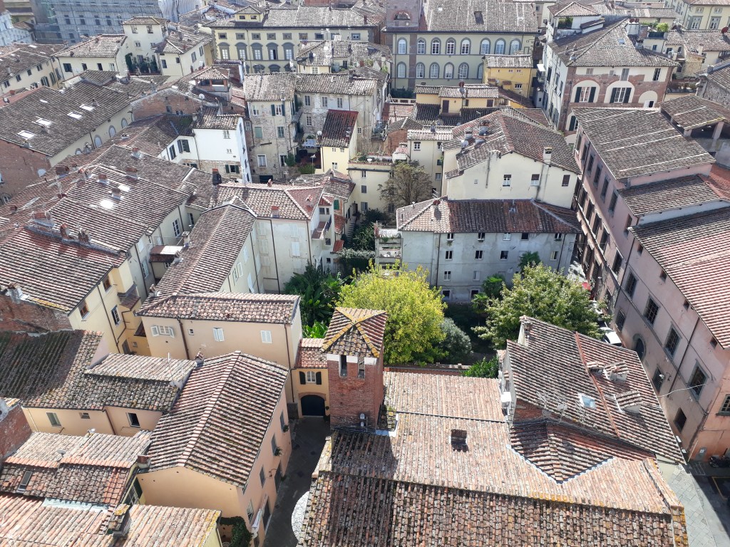 Une fois tous les préparatifs accomplis, je monte en haut de la tour Guinigi, la plus haute de Lucca, et y découvre une vue magnifique sur les toits et sur les collines des alentours. Je visite aussi la cathédrale et ai l’agréable surprise de découvrir qu’en tant que pellegrina, je n’ai pas à payer l’entrée (léger sentiment de supériorité…oui je sais, ce n’est pas très chrétien…). Encore une glace (finalement ce n’est peut-être pas la marche qui est devenue une drogue…) et je rentre faire une sieste. En fin d’après-midi, je retrouve Joan, un couchsurfer barcelonais qui voyage en moto et qui est aussi de passage à Lucca. Je passe une très bonne soirée avec lui, je ris beaucoup en écoutant le nombre incalculable d’anecdotes qu’il a sur ses voyages en Chine et en Corée et sur les incidents interculturels qu’il a pu y vivre. Je me couche prête pour de nouvelles aventures !