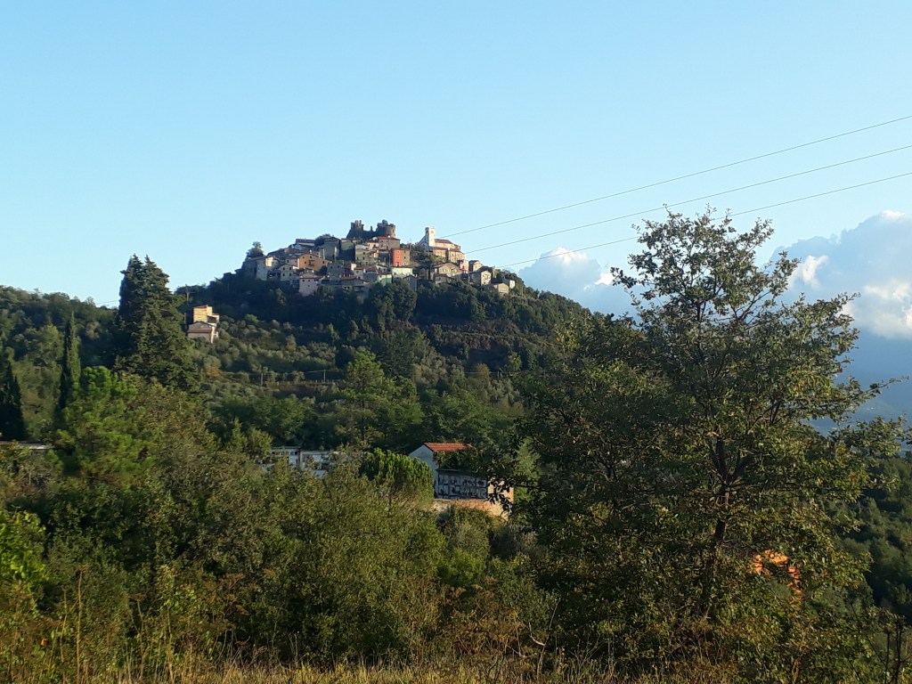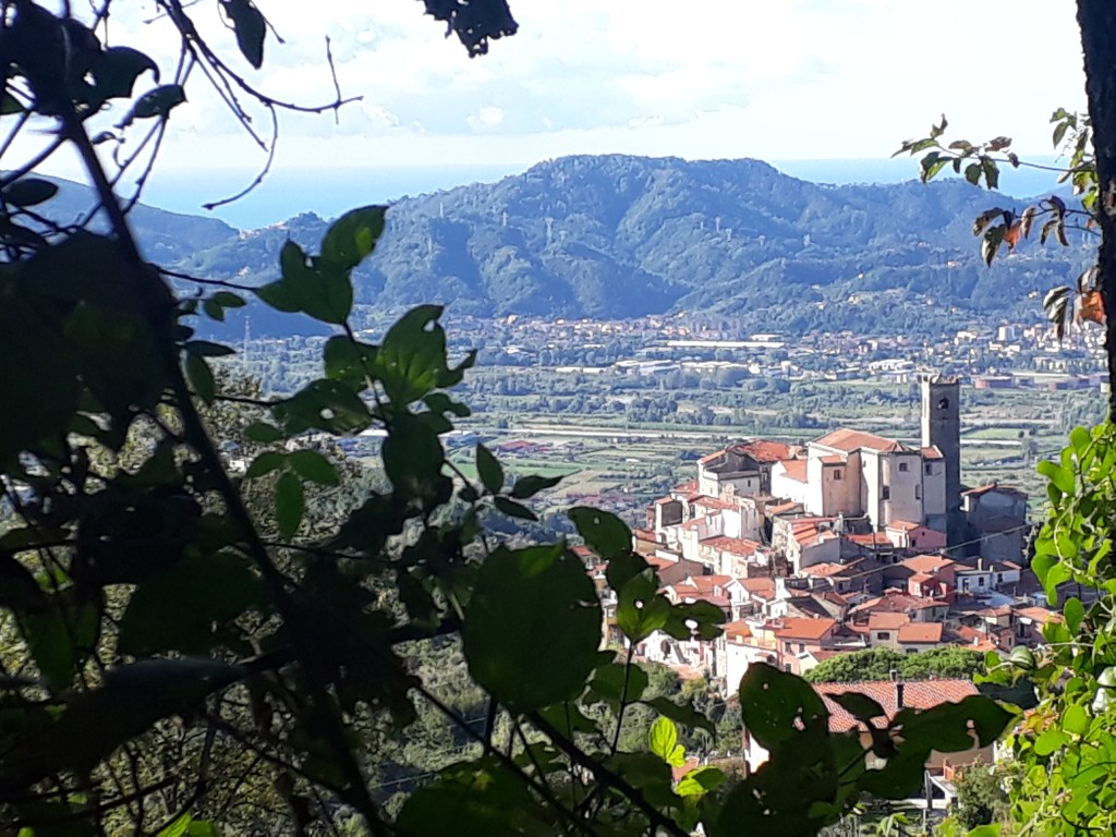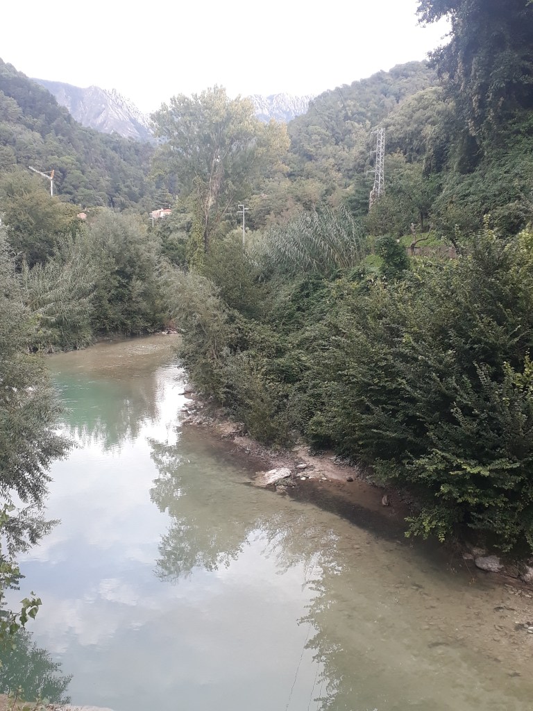 Aujourd’hui encore je marche avec Marco, aujourd’hui encore nous partons avant l’aube, et aujourd’hui encore nous passons la moitié du chemin à saliver à l’idée de ce que nous allons manger ce soir. Mais, ce qui change, c’est qu’aujourd’hui on voit la mer ! Après tous ces jours de marche, après avoir traversé des montagnes, des champs, des forêts, je vois la mer de Ligurie. Je suis émue, d’autant plus que nous ne nous y attendions pas, car les personnes interrogées à Aulla hier nous ont toutes assurés qu’on ne la verrait pas aujourd’hui. Comme beaucoup d’entre nous, ils ne connaissent pas si bien l’endroit où ils vivent. Nous traversons des bosquets et je suis soulagée de voir que je ne suis pas la seule à avoir quelques difficultés animalières: Marco a la phobie des serpents et son ratio km/heure explose lorsque l’on traverse des zones plus arrides et escarpées. Est-ce pervers de s’en réjouir ?