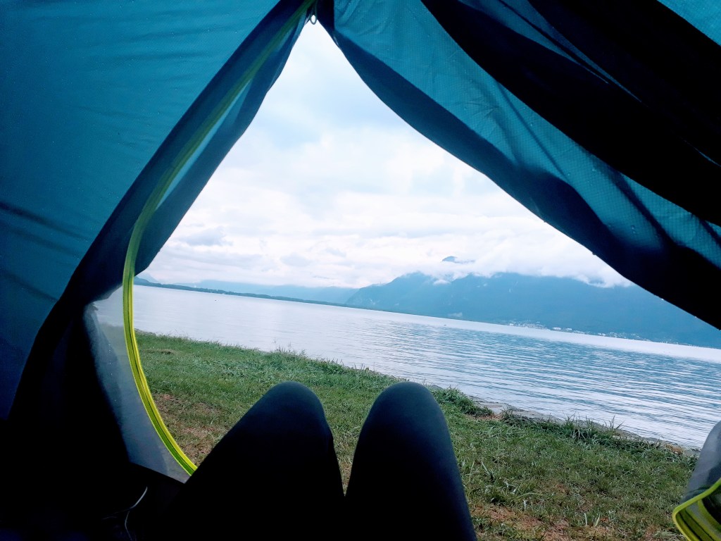 Et bien, assez étonnée, je me réveille en forme pour cette 2ème journée de marche, j’ai bien dormi malgré la pluie battante une bonne partie de la nuit, et surtout je me réveille avec cette vue là !