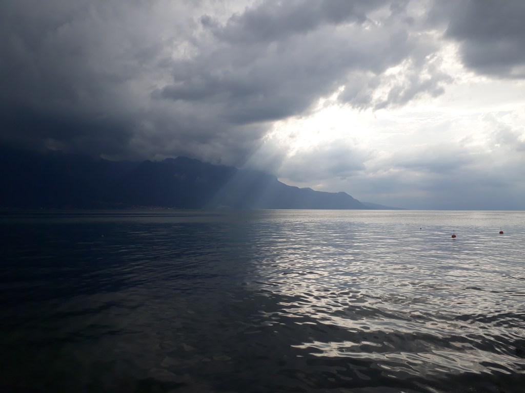 Bref, je me dirige ensuite vers le camping de Vidy…ben oui, j’ai pas trouvé d’hébergement à un prix décent, donc la citadine que je suis va dormir au camping pendant 4 nuits sur le trajet suisse ! Oh j’ai de l’entraînement, j’ai passé des vacances au camping quand j’avais 17 ans 🤣. Installation nickel, puis, l’apothéose de la journée, petite baignade dans le lac au coucher du soleil, une merveille ! Et pour finir une petite bière au resto du camping avec animation musicale très 60’s-80’s…qui durera un bon moment après mon retour dans ma petite tente…Et quand ça s’arrête la pluie prend le relais, parce que sinon c’est pas drôle. Et là, la panique me saisit: ça va tenir cette toile ? J’ai jamais testé sous la pluie…puis j’entends des pas tout près de ma tente, c’est quoi ? Quelqu’un cherche à me voler ? Je me redresse droite comme un i ou comme on peut se redresser droit comme un i dans une mini-tente. Ben non, c’est juste les voisins qui rentrent…un excellent exercice de lâcher-prise la nuit au camping, je recommande !